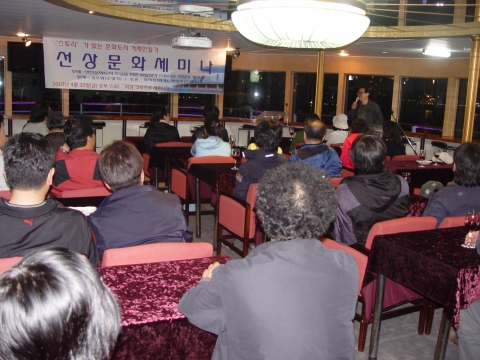 또한 4월 30일(금) 거제시 고현항 뉴거제크루즈해양관광(주)의 후원으로 크루즈 선상에서 ‘선상 문화 세미나’를 개최하여 문화거제를 만들기 위해 폐교를 활용한 ‘복합창작스튜디오’의 필요성에 대해 소설가 박상우, 화가 최석운의 발제로 열띤 토론을 가졌다.