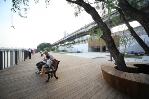 기존에 어둡고 인적이 드물었던 둔치 유휴공간에 버드나무와 멋스러운 전망데크를 조성하고, 환한 조명과 운동시설을 설치해 가족 단위로도 쉽게 찾을 수 있는 휴식공간으로 탈바꿈시켰다.