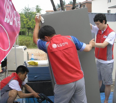 LG전자는 가전제품 서비스 활동을 중심으로 전국 단위의 수해 복구 지원을 펼치고 있다.