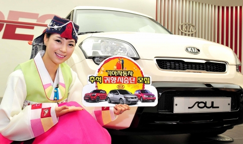기아자동차는 추석 연휴를 맞아 포르테 해치백, 쏘울, 그랜드카니발 등 총 350대의 귀향 시승차량을 준비하고 일반 고객을 대상으로 추석 귀향 시승단을 모집한다.