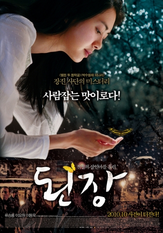 “사람잡는 맛이로다!”라는 독특한 카피로 호기심을 자극하는 <된장>의 포스터는 이 영화가 단순히 맛에 대한 이야기가 아닌 흥미로운 사건에 관련된 이야기임을 시사해준다. 신비스러운 모습으로 나비를 손에 얹은 장혜진(이요원 분)을 중심으로 사건의 시발점이 된 ‘산장식당’ 앞에서 경찰에 포위 된 채 넋이 나간 희대의 살인마 김종구의 어렴풋한 모습은, 영화에 대한 궁금증을 증폭시킨다. 대체 어떤 된장이길래 살인적인 맛이 나는지, 그 된장으로 인해 어떤 사건이 벌어지게 되는지 궁금해지는 것.