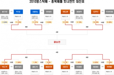 오늘 8강전에서는 16강에서 10%가 넘는 수익율을 보여줬던 북극곰과 서울촌놈이 대진을 펼쳤으며 두 명의 전문가들은 각각 투비소프트, 성신양회, 한진피앤씨, 혜인을 포트폴리오로 구성한다. 종목배틀의 승자는 왕스탁카페(http://cafe.daum.net/koreaGoGo)를 통해 확인할 수 있으며 종목배틀은 장 중 오전 9시부터 오후 3시까지 시청 및 참여가 가능하다.