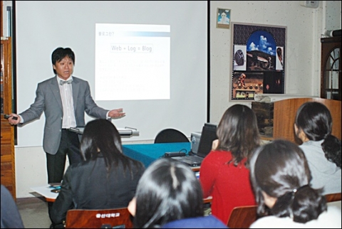 미대 5층 섬유디자인학과 강의실에서 열린 이 날 강의는 ‘블로그 활용해 전공 스펙쌓기, 대학생 파워 블로거 되기’ 주제로 2시간가량 진행됐다.