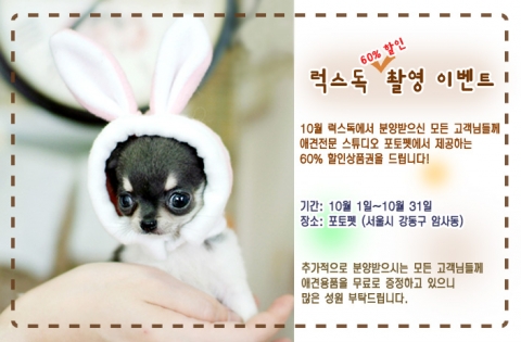 럭스독, 강아지 분양 시 강아지 촬영 할인 이벤트 진행