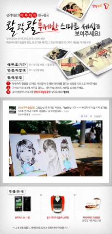 참가자 중 ▲1등 1명에게는 LG 옵티머스 2X ▲2등 1명에게는 일리 미타카 캡슐머신 ▲매일 2명을 추첨해 파리바게트 5천원 상품권을 증정(1,2등 경품 제세공과금 22%는 당첨자 부담)한다. 당첨자는 2월 9일 생각대로T 미투데이(me2day.net/t_suda)에서 발표된다.