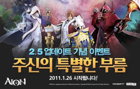 이번 2.5 업데이트 ‘주신의 부름’과 업데이트 기념 이벤트에 대한 자세한 내용은 아이온 공식 홈페이지(aion.plaync.co.kr)에서 확인할 수 있다.