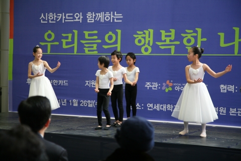 한편, 신한카드는 지난 20일에도 구로청소년수련관에서 지역사회 내 한부모조손다문화 가정 등 소외계층을 초대하여 ‘행복한 동아리’의 나눔 공연 행사를 열었다.
