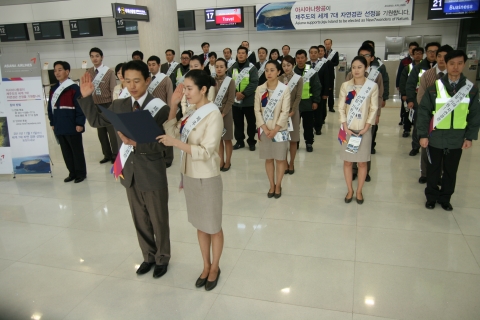 아시아나항공 제주공항 임직원 30여명은 27일 제주공항 카운터 앞에서 ‘제주-세계 7대 자연경관 선정’ 성사를 위한 결의대회를 가지고 공항 카운터 LED 전광판, 홍보물 등을 통해 본격적인 홍보활동에 나섰다. 올해 제주 관광 활성화를 위해 개인 수하물 15kg에 추가로 제주도 특산품을 10kg을 무료로 위탁할 수 있는 ‘제주 특산품 사랑 10K’ 서비스를 2011년 12월31일까지 연장했다.