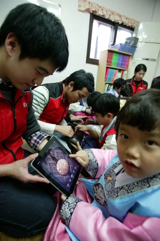 이번 봉사활동은 관심과 사랑이 필요한 지역아동센터 아동에게 설을 맞이하여 민족의 전통을 알리고 함께 명절을 즐기는 시간으로 마련됐으며, 특히 민속놀이 체험에 아이패드를 활용해 아동들의 흥미를 일으키고 이해를 도왔다.