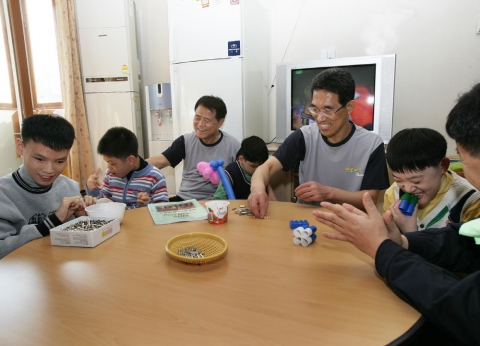 이어 시각장애우들과 ‘골볼’ 경기를 함께 하는 특별한 시간을 가졌음. ‘골 볼’(Goal ball)은 시각장애인들이 세 명씩 팀을 지어 종소리가 나는 공을 굴리며 하는 구기종목으로, 이 날 김쌍수 사장과 김주영 위원장은 보안경을 착용하고 시각장애우들과 골볼 경기를 함께 하며 그들의 입장을 조금이라도 이해할 수 있는 시간을 가졌음. 골볼 체험에 이어 목욕, 시설 청소, 문화나눔, 말벗 및 놀아주기 등을 함께하며 고향을 찾지 못하는 광명원 가족들과 함께 즐거운 시간을 보냈음.