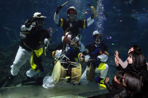 행사기간 중 매일 1회 (14:00 / 10분소요) 상어 30여 마리가 살고 있는 수조 안에서 꽹과리, 징, 장구, 소고를 든 사물놀이패들이 신명 나는 우리장단의 멋과 흥겨움을 전해 줄 예정이다. 공연 중 현장퀴즈를 맞춘 관람객에게는 선물이 든 복 주머니도 함께 증정한다.