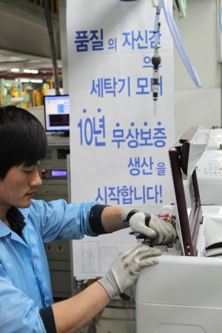전자동 세탁기 10년 모터 무상보증은 2월 1일 이후 생산분 부터 적용된다.