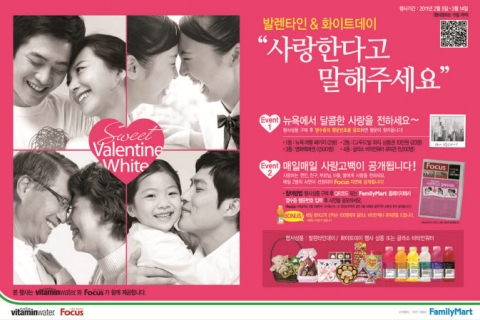 편의점업계 1위 보광훼미리마트는 발렌타인데이를 맞아 ‘사랑한다고 말해주세요’ 이벤트를 진행한다. 소중한 사람에게 보내는 특별한 메시지를 홈페이지에 등록하면 추첨을 통해 지하철 무료일간지를 통해 소개되는 이벤트로 싱글은 고백을, 연인은 사랑을, 가족에게는 감사의 마음을 전할 수 있는 특별한 기회다.