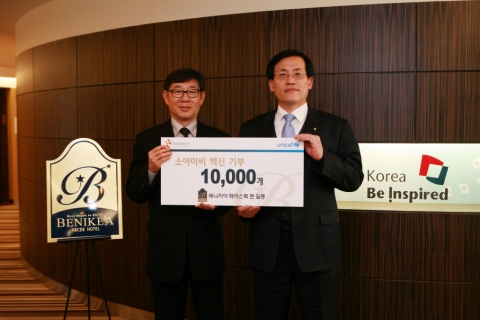 한국관광공사 베니키아, 유니세프에 1만명분 소아마비백신 기부금 전달