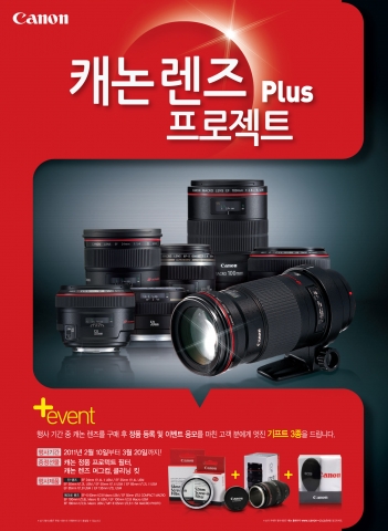 한편, 캐논은 EF 렌즈 누적 생산 대수 6,000만 대 돌파를 기념해 2월 10일부터 3월 20일까지 EF 렌즈를 구매하면 사은품 3가지를 증정하는 ‘캐논 렌즈 PLUS 프로젝트’ 프로모션을 진행한다.