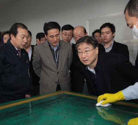 그 일환으로 10일 삼성전자 영상디스플레이사업부 윤부근 사장을 비롯한 영상디스플레이사업부소속 주요 임원들이 경기 안성 소재 신흥정밀을 방문했다.