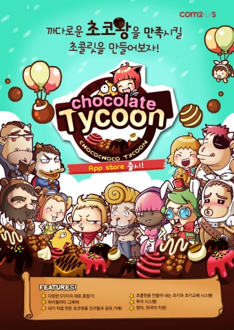 컴투스(대표 박지영, www.com2us.com)는 자사의 폰메이드 초콜릿(Phone made chocolate) 게임 ‘초콜릿 타이쿤’을 애플 앱스토어를 통해 10일부터 서비스를 시작한다고 밝혔다.