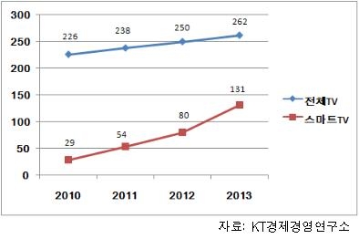 디스플레이서치 & 아이서플라이의 발표 자료에 따르면, 2010년 전 세계에 보급된 스마트TV는 전체 TV 판매량의 17.2% (3,800만대)를 차지하는 것으로 추정되고 있으며, 2013년에는 스마트TV가 연간 1억대 이상 판매되며 전체 시장 대비 33.3%의 높은 비중을 차지할 것으로 전망하고 있다.