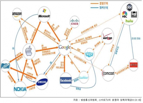 이에 시장을 선점하기 위하여 이미 글로벌 TV 제조업체뿐만 아니라 관련 분야 참여업체들의 주도권 경쟁이 본격화되고 있으며, 특히, 전통적인 TV등 디바이스 세트메이커외에 구글, 애플, MS 등 IT기업의 관심과 참여가 시장 성장을 촉진시키고 있다는 사실은 시장환경이 이전과는 다른 양상으로 변화해 나갈 것임을 보여주고 있다.