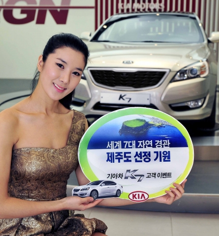 기아자동차(주)는 제주도의 ‘세계 7대 자연경관’ 선정을 기원하는 범국민적인 운동에 동참하고자 ‘The Prestige K7’ 출고 고객 중 추첨을 통해 제주 커플 왕복 항공료를 지원하는‘세계 7대 자연경관 제주도 선정 기원 ‘The Prestige K7’ 대고객 이벤트’를 실시한다고 17일(목) 밝혔다.