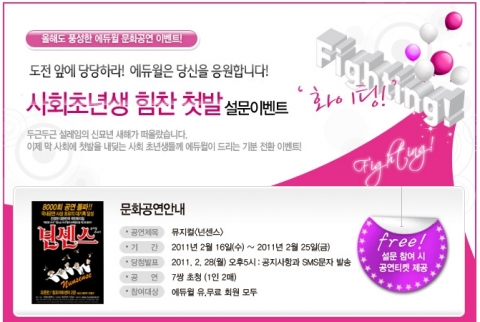 이번 설문이벤트는 에듀윌에서 매월 개최하고 있는 문화공연 페스티벌의 일환으로 사회초년생의 직장생활과 관련한 재미있는 테마로 구성했다.