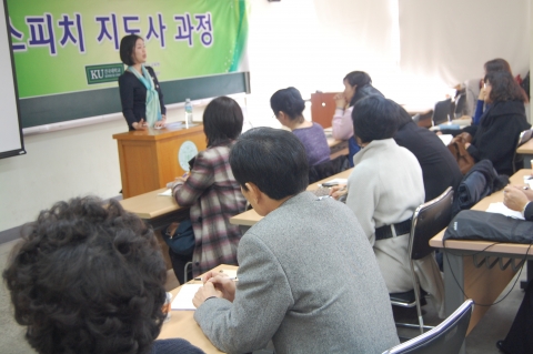 건국대 리더십아카데미에서 2011년 스피치 지도사 1기(건국대 총장명의 수료증 수여, 건국대 총장명의 자격증 취득)과정은 단순히 강사의 스킬 교육뿐만 아니라 강사 스스로 아이의 눈높이에 맞는 스피치 프로그램을 개발하고 아이들에게 웃음과 긍정적인 영향을 줄 수 있는 강사 양성에 목적을 두고 있으며 현장에서 아동 스피치강사로 활동할 수 있는 여러 가지 정보 제공 및 강사추천도 가능한 과정으로 진행 될 예정이다.