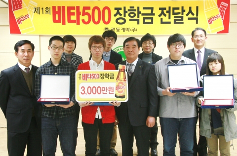 한편 광동제약은 비타500 장학금 외에도 2008년부터 ‘가산문화재단’을 통해 어려운 가정 환경의 중고등 학생 100여 명에게 약 1억 원의 장학금을 전달한 바 있다.