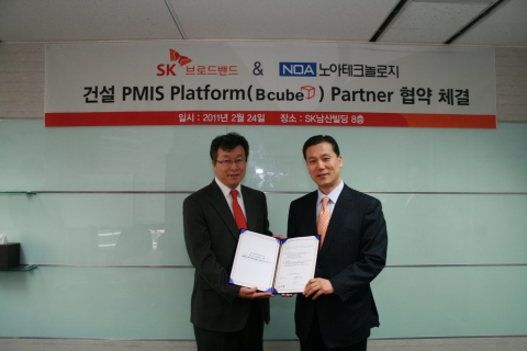 SK브로드밴드(대표이사 : 박인식, www.skbroadband.com)는 이날 SK남산빌딩에서 (주)노아테크놀리지와 이와 관련한 양해각서(MOU)를 체결하고, ‘B큐브 건설사업관리시스템(PMIS)’ 서비스를 출시키로 했다.