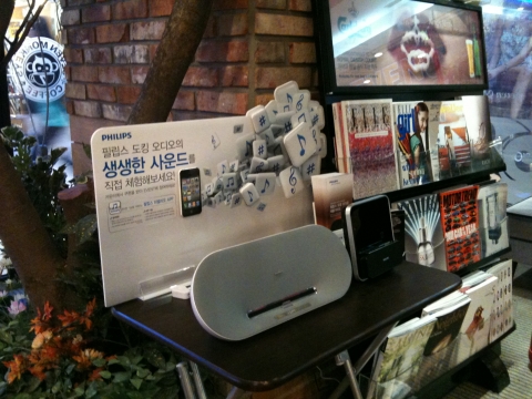 필립스에서는 2월 21일부터 3월 31일까지 세븐몽키스 커피와 주커피에 아이폰 도킹 오디오 체험존을 설치하고, 스크래치 복권 이벤트를 진행하면서 2030 고객 마음 사로잡기에 나섰다.