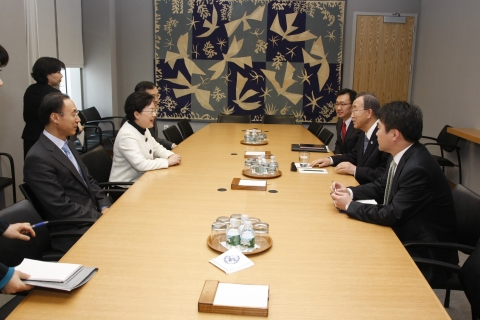 반 총장은 “한국이 OECD/DAC 가입을 통해 선진 원조국 대열에 올라서고 UN Women 집행이사국으로 선출되는 등 한국의 국격 제고를 긍정적으로 평가하고, 앞으로도 전 세계 여성의 지위 향상과 여성문제 해결을 위해 한국 정부가 선도적 역할을 담당해 줄 것”을 당부했다.