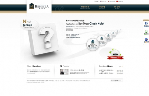 이 밖에도 베니키아는 이번 홈페이지 개편을 통해 베니키아 브랜드 소개 부분을 별도의 사이트로 구성하였다. 이렇게 해서 베니키아 브랜드로 가맹을 원하는 호텔관계자가 베니키아에 대한 정보를 쉽게 얻을 수 있도록 했다. 예약자 뿐 아니라, 호텔사업자 및 경영자를 위한 편의성도 강화했다.