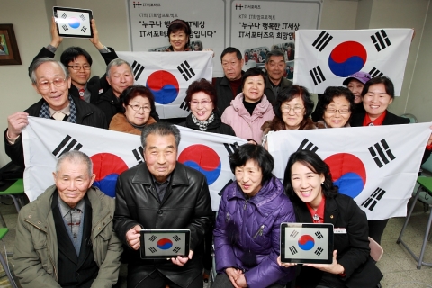 KT의 IT서포터즈와 사할린 동포가 인터넷 지도 및 사진 검색을 이용해 러시아 블라디보스톡을 찾아보고 있다. IT서포터즈는 3.1절을 맞아, 경기도 오산 내삼미동의 사할린 동포들을 방문해, 인터넷 지도로 고향 찾아보기, PC를 이용한 태극기 검색과 그리기 교육 등을 하고 태극기가 없는 가정에 태극기를 나누어 주는 행사를 2월 28일 가졌다.