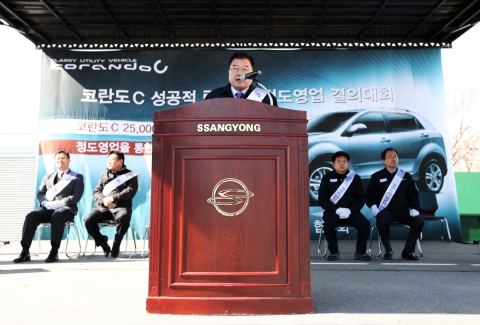 또한 이날 행사에 참석한 쌍용자동차 국내영업본부 하관봉 부사장은 “‘코란도 C’의 성공적인 런칭을 위해 영업 최일선에서의 역할이 무엇 보다 중요한 만큼 목표 달성을 위해 최선의 노력을 다해 달라”고 당부하고 “고객이 전국 어느 영업소를 방문해도 동일한 가격과 서비스를 받을 수 있도록 소비자에게 신뢰를 주어 기업이미지 제고에 힘써 달라”고 말했다.
