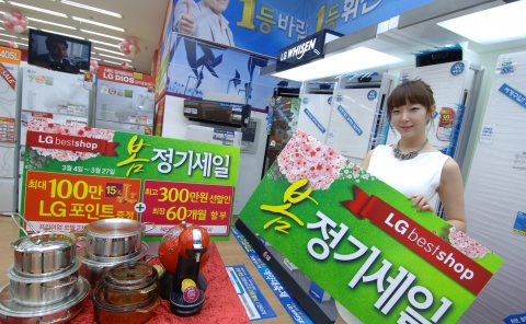 LG 베스트샵에서 마련한 올해 첫 정기세일로 행사기간 중 전국 주요 매장을 방문하면 LG전자 제품 구매 시 특별한 혜택을 받을 수 있다.
