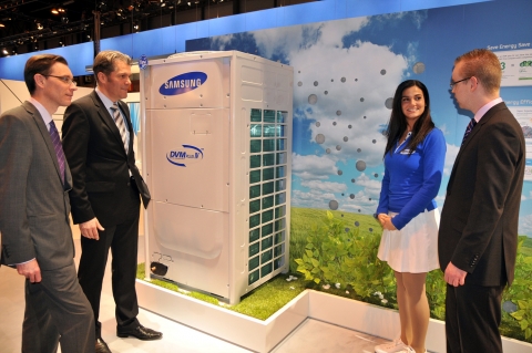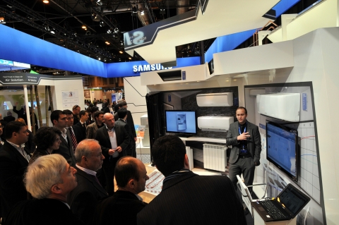 삼성전자는 이번 전시회에서 고효율 시스템 에어컨 실외기, 인테리어 실내기, 자연가습청정기 등 공조 제품과 빌딩에너지 관리시스템, 원격관리시스템 등의 스마트 공조 솔루션을 공개했다.