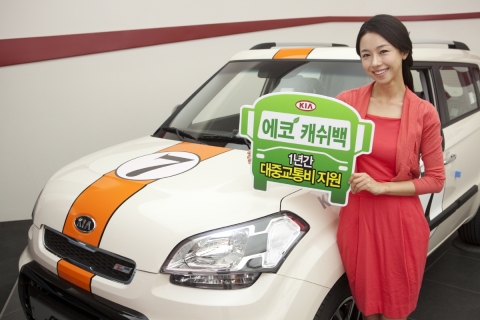 기아자동차㈜는 3월 프라이드, 포르테, 쏘울 구입 개인고객과 기아차를 출고한 구제역 피해 농가, 2011년 대학(원) 신입생 본인 및 부모를 대상으로 1년간 대중교통비를 지원하는 ‘에코 캐쉬백(ECO Cashback) 이벤트’를 실시한다.