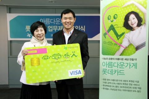 우리 사회의 친환경적 변화에 기여하고, 국내외 소외된 이웃과 공익단체를 지원하는 비영리공익재단 아름다운가게는 지난 8일 오후 서울 종로구 안국동 아름다운가게 본부에서 롯데카드와 업무제휴 조인식을 갖고, 오는 14일부터 카드 사용금액의 일부가 자동으로 기부돼 어려운 이웃들을 돕는 ‘아름다운가게 롯데카드’를 선보이기로 했다.