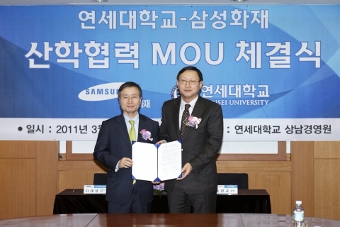 삼성화재와 연세대학교는 지난 10일 연세대 상남경영원에서 지대섭 삼성화재 사장과 손성규 연세대 상남경영원장이 참석한 가운데 산학협력 프로그램 운영을 위한 협약을 체결하고 양해각서를 교환했다.