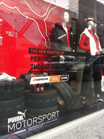 3월 11일부터 4월 14일까지 진행되는 이번 한국타이어-푸마 공동 마케팅 활동에는 2012년 DTM 시리즈에 사용될 DTM 전용타이어 F200, Z206, Z207, Z211 4종과 모터스포츠 라이프스타일 컬렉션인 푸마 페라리 라인의 2011년 S/S 제품이 전국의 약 100개 푸마 매장에서 함께 전시된다. 또한 LED를 활용, 푸마 고유의 브랜드 로고를 레이싱 트랙으로 형상화해 DTM 전용타이어, 모터스포츠 의류, 레이싱화 등과 함께 모터스포츠 분위기를 한껏 살려냈다.