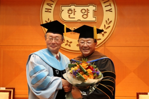 17일 오전 11시 한양대 백남학술정보관에서 열린 이날 학위 수여식에는 한양대 김종량 총장과 정규수 총동문회장, 문재우 손해보험협회장 등이 함께 참석해 구자준 회장의 명예 경영학박사 학위 취득을 함께 축하했다.