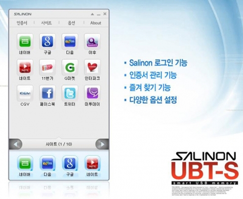 기존의 보안용 S/W가 내장된 방식이 아니라 H/W 보안칩방식(Security Chip)으로 로그인기능, 공인인증서관리, 패스워드기능 등이 탁월하다.