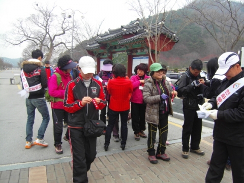 관계자들은 산불로 인한 인명 및 재산피해를 방지하고 소중한 산림자원 보호를 홍보하는 어깨띠를 착용하고 등산객들에게 리본 달아주기와 홍보안내문 배부 등을 통해 산불예방에 적극 동참해 줄 것을 당부했으며, 등산로주변의 쓰레기 수거 등 산지정화 활동도 함께 펼쳤다.