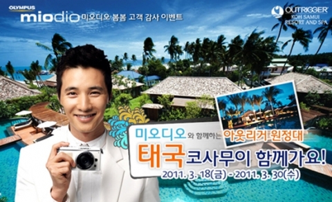 올림푸스 미오디오의 ‘아웃리거 리조트 원정대’로 선정된 4명은 4월 8일(금)부터 4월 12일(화)까지 태국의 유명 휴양지 코사무이에 위치한 아웃리거 리조트로 사진 여행을 떠나게 된다. 최근 오픈한 아웃리거 코사무이 리조트는 아름다운 해변과 짙은 녹음에 둘러싸여 휴양과 레저를 동시에 즐길 수 있는 최고급 리조트. 4박 5일 일정의 이번 사진 여행에서는 태국 코사무이의 명소들을 둘러보는 다양한 일정과 함께 특히, 포토멘토 박성빈 작가와 함께 사진 강습 및 출사 이벤트도 마련되어 있어 더욱 알차다. 뿐만 아니라, 오는 4월 21일에 개최되는 ‘P&I 2011(서울국제사진영상기자재전)’ 내 올림푸스 미오디오 부스에 본인의 작품을 전시할 수 있는 기회도 주어진다.