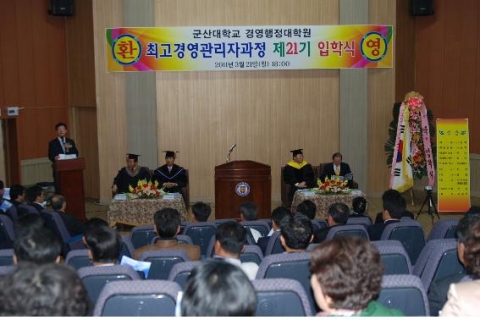 입학식은 군산대학교 채정룡 총장 외 군산대학교 주요 보직자, 제 21기 최고경영관리자과정생, 최고경영관리자과정 및 최고여성지도자과정 총동창회 임원 등이 참석한 가운데 열렸는데, 강신석 외 69명이 입학허가를 받았다.