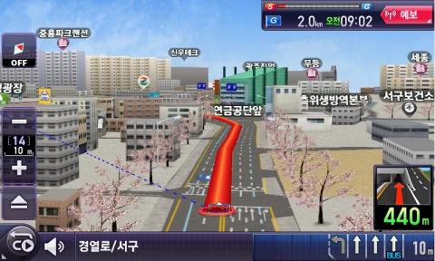 또한 ‘봄 시즌 테마’로 ‘금오산 벚꽃길’, ‘칠갑산 벚꽃길’, ‘대구 두류공원 벚꽃길’, ‘울산 작천정 벚꽃길’ 등 전국 16개 벚꽃나무 길을 3D 전자지도에 반영했다.
