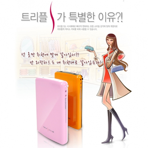 이제품의 트리플 S는 세 가지 S, 즉 Smart, Simple, Style이란 세 가지 뜻이 있으며, 특별한 도구 없이 간단하게 교체 할 수 있는 여분의 상단 케이스(블랙-오렌지, 화이트-핑크)가 들어있어 취향에 맞게 사용할 수 있다.