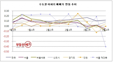 3월 4주 매매시장, 개포주공 호가 올랐지만 대부분 수도권 시장은 ‘잠잠’