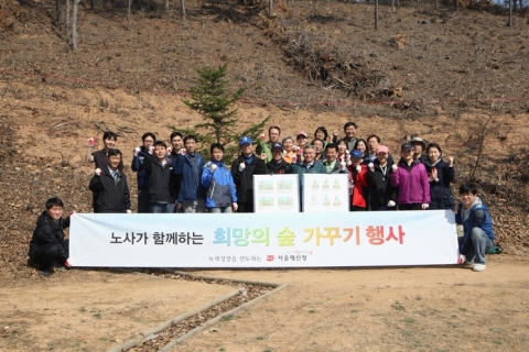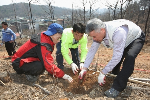 노홍근 사업지원국장 등 27명의 직원이 이날 행사에 참여, 죽은 나무들을 제거하고 산벚나무 600본을 심었다.