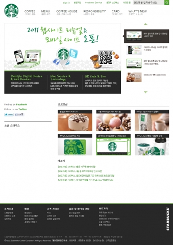 새로운 스타벅스 사이트는 PC, 모바일폰 등 다양한 기기와 운영 체제에 관계없이 방문할 수 있으며, SNS서비스와 연계되는 다양한 정보 공유가 가능하다. 또한, 모바일 사이트의 경우, GPS위치 기반 서비스를 통해 현재 위치에서 가까운 매장을 쉽게 찾을 수 있다.