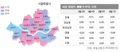 4월 1주 매매시황…개포·둔촌 주공·고덕시영 호재에도 서울 재건축 3주 연속 하락